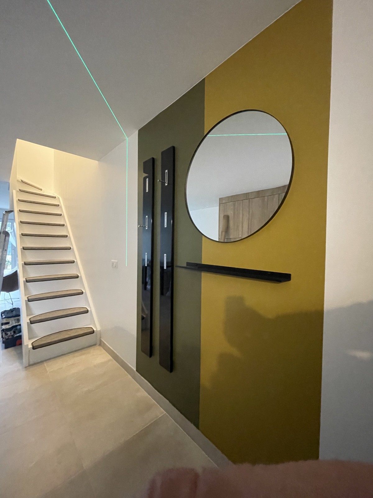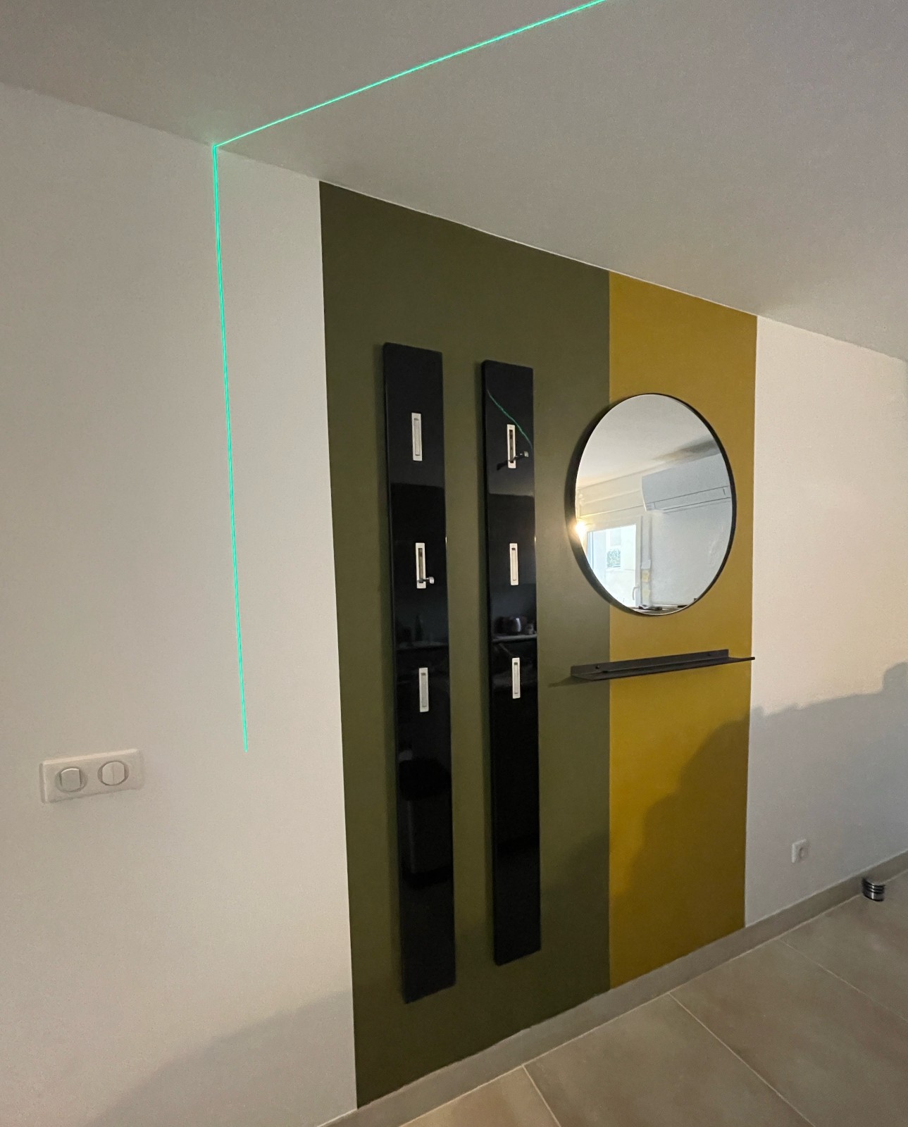 Mise en peinture pour marquer la création d’un portemanteau à l’entrée de la maison.