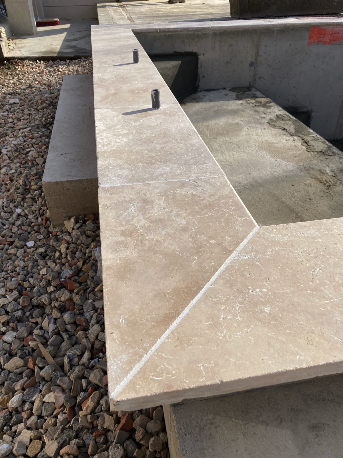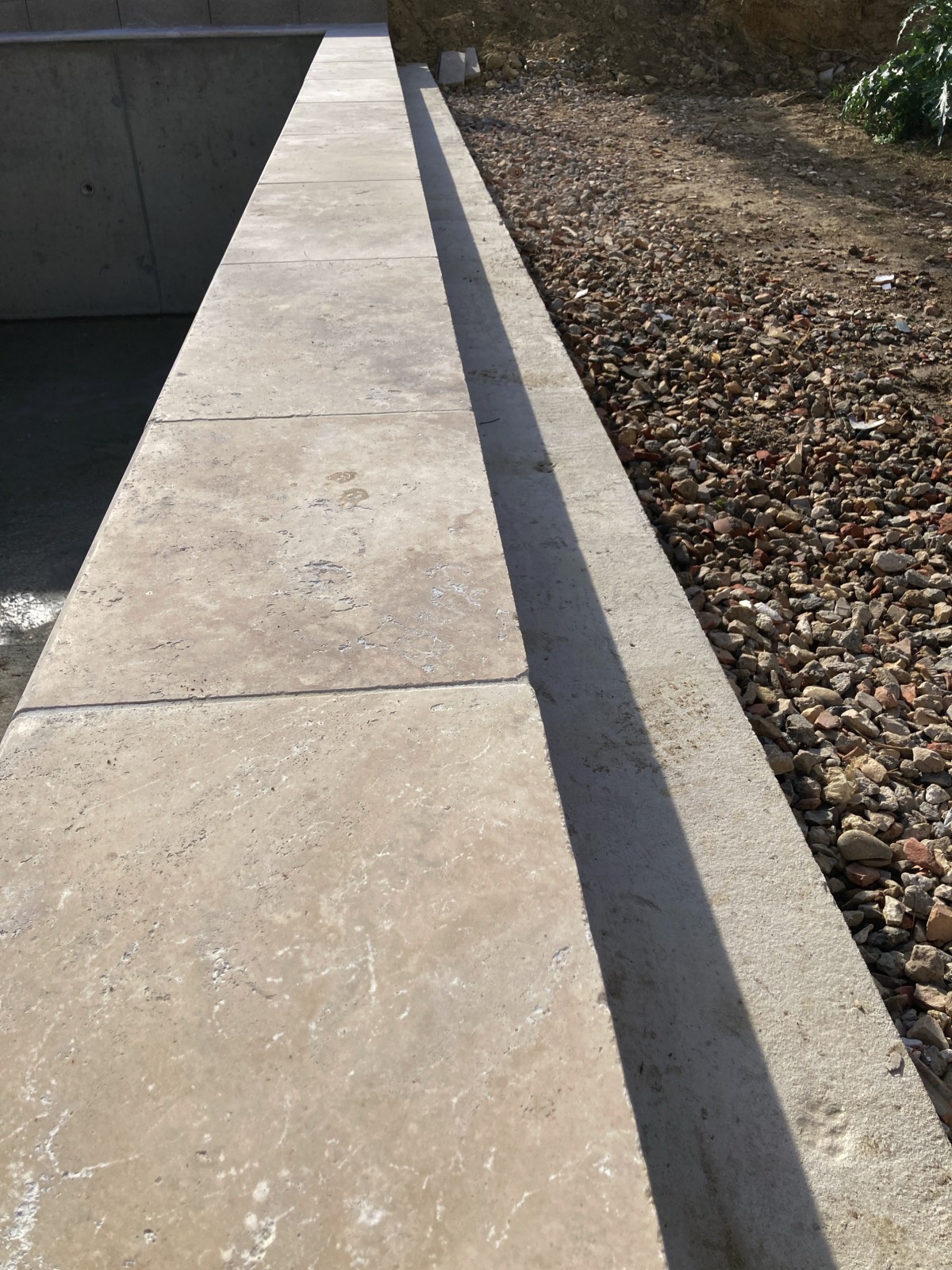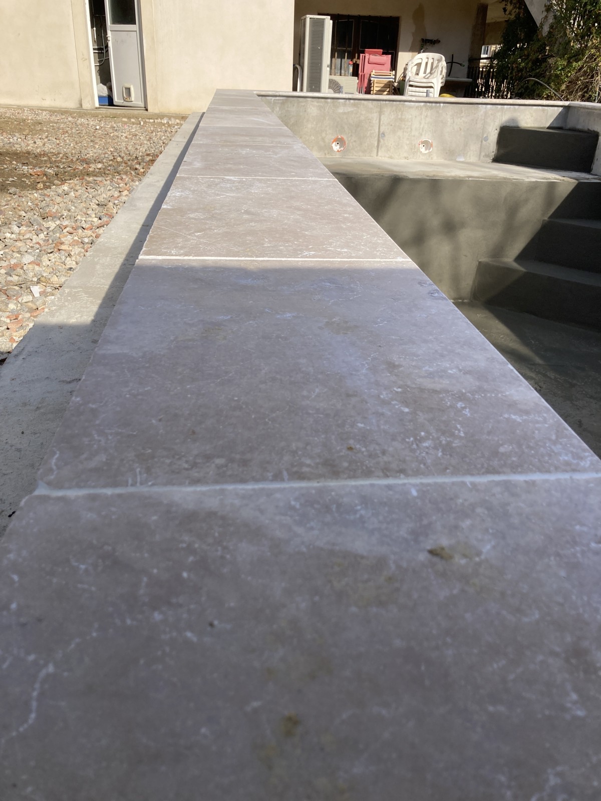 Pose de margelles travertin 61*33*3cm mesurant 6m*3m proche D’Alès à Saint-Jean-Du-Pin (30).
