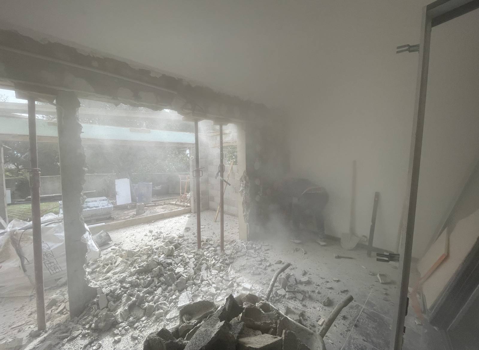 Pose d'une baie vitrée coulissante à triple vantail : extension de maison à Saint Etiennes du Grès dans le secteur des Alpilles proche d'Arles.